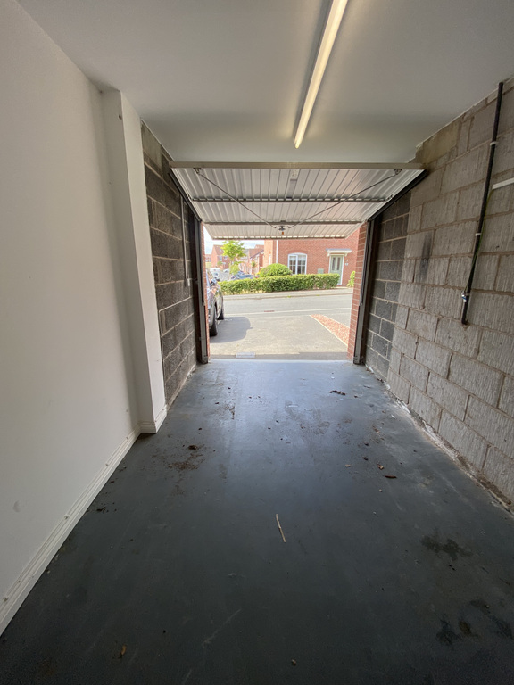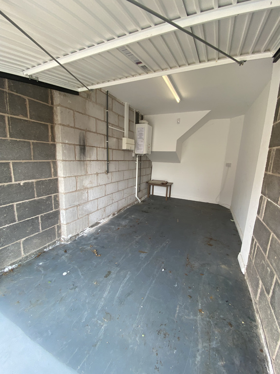 Having overhead door, power points and light fitting, partially plastered walls.