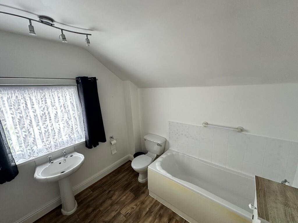 Having window to the rear elevation, wood look flooring and a three piece suite comprising of panelled bath, WC and a hand wash basin.