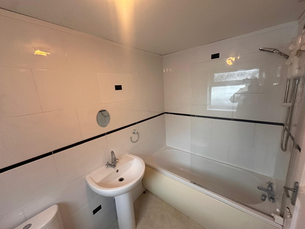 Having window to the side elevation, complete with a three piece suite including a Bathtub with overhead shower, WC and a hand wash basin.